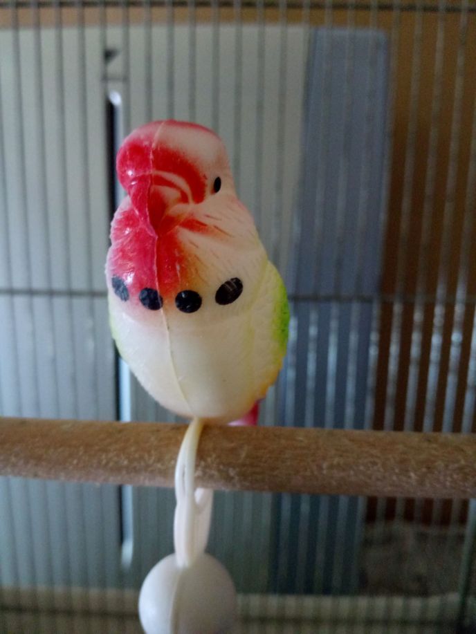 それは、妙にリアリティーを追求しているにもかかわらず、微妙に本物いんこと形の違う、「プラスチック」のインコ型おもちゃであった。止まり木に通してブラブラさせて使うための輪っかとおもりがセキセキもどきの下についている。