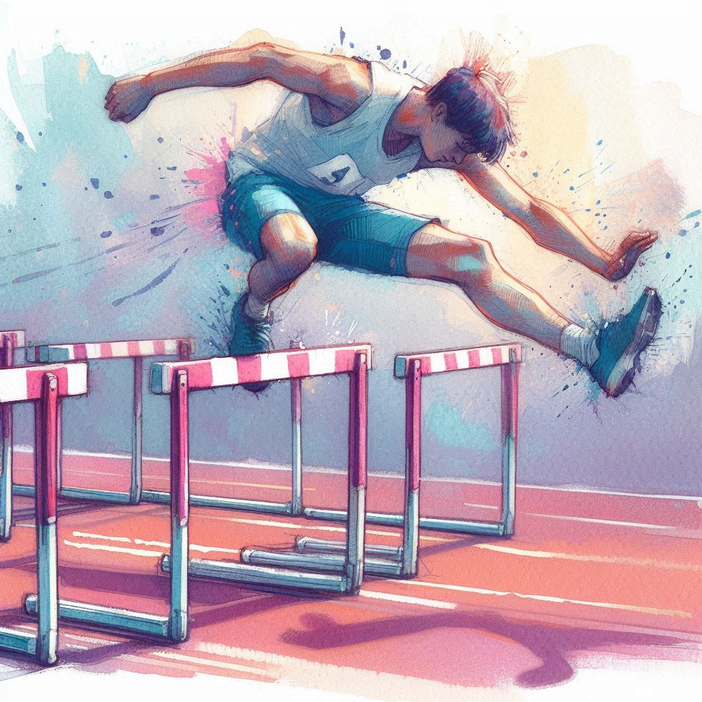 柔道の受け身のように左手を曲げて1回転して起き上がろうとすると、目の前に6台目のハードルがあった。