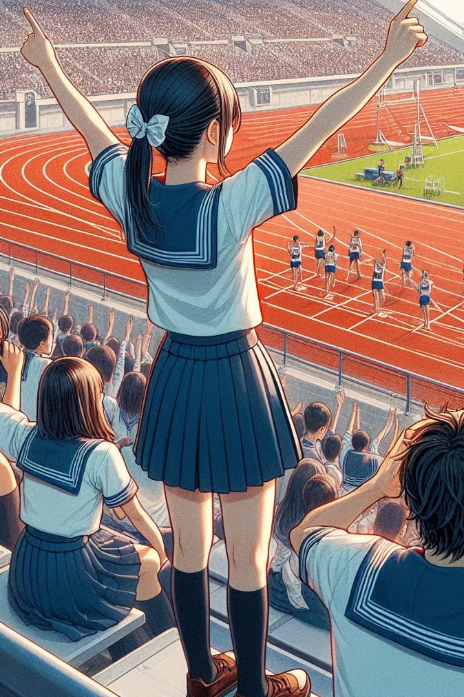 高校生の陸上競技大会の声援としては異常に思えるほどの派手な声援に振り返ると、スタンドの最前列には巨大な望遠レンズを構えた武部と、北園高校の制服のスカートを短かすぎるくらいに上げて着ている川相祥子が両手を大きく振っていた。