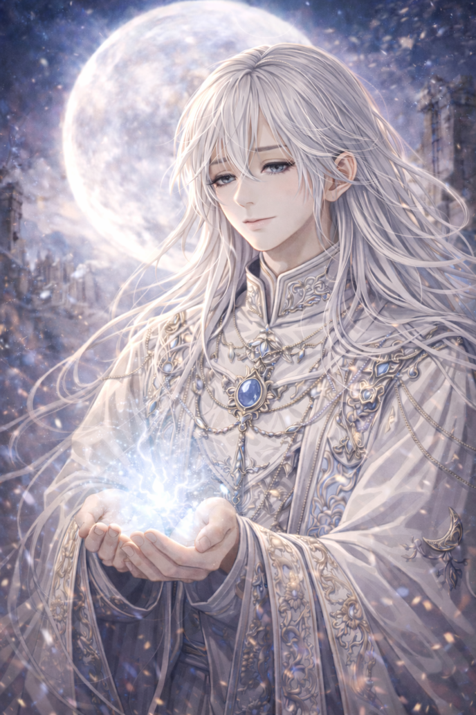 神官ルナを愛し、二百年の孤独に寄り添うことを誓う。