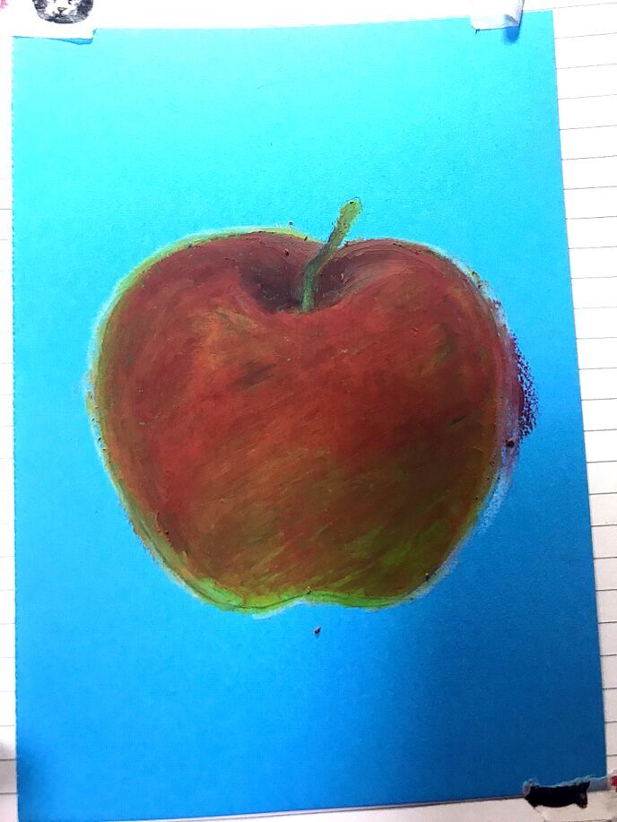 リンゴの絵ですね。はみ出したのは動揺してしまったからです。