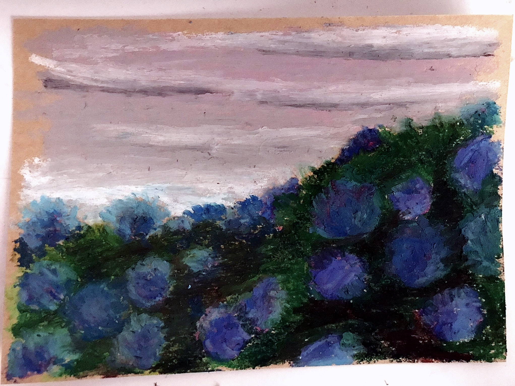 使ってないというか片方は捨てたし片方は折れて放置されていた菜箸が鉛筆削りで削れたので、ちょっと顔料を削るのに使いました。アジサイの花の形とるのに。見えるかな?―と思って画像拡大してみたけど見えませんでした。