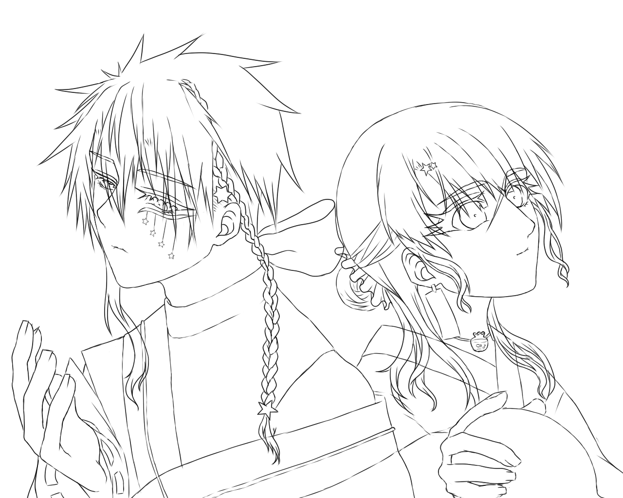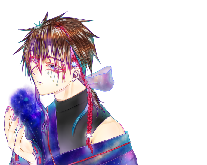 線画では後ろに極彩さんがいて、すれ違っている感じの設定でいました。