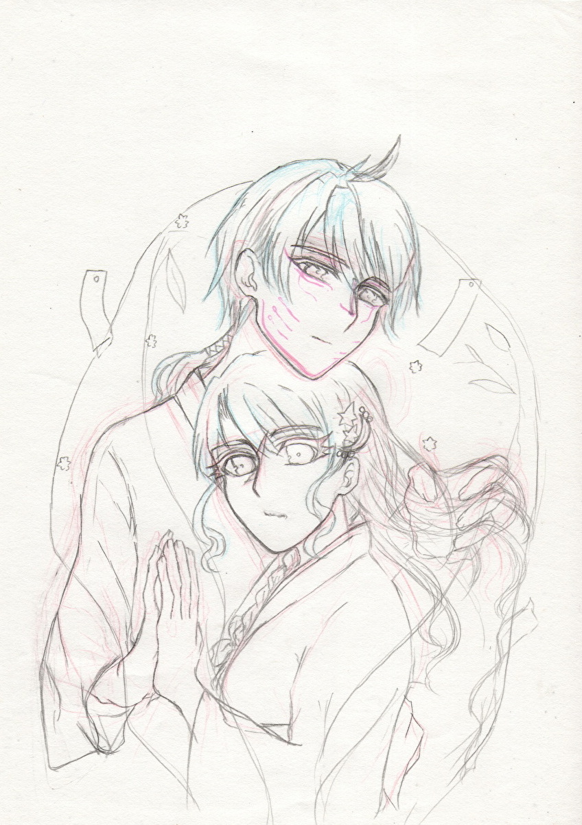 シリウス水彩紙という発色はいいんですけれども消しゴムの耐久があまり強くなく、毛羽立ってしまって綺麗に下書きをするのが上手くいかず、苦手意識を持っていたので紙がもう何年も余っていたのですが、トレス台持ってるんだよなって感じで、100均のらくがき帳が有り余っていたので、そっちに下書きしてからトレスといった感じで。