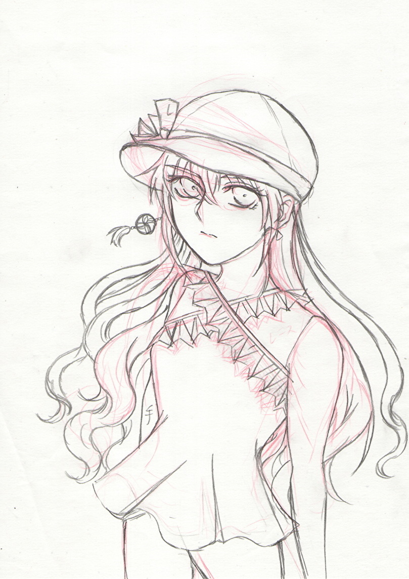 帽子の黒は、無印良品色鉛筆の不思議な色、31うすももいろ。なんかジェルクレヨンみたいなんですよ。それをベースにしました。ガチの黒ってなんか重い感じなので、黒塗るときって気を遣うんですよね。ガチの黒を調和させるために、グレーを嗾けたり。色を嗾けるってなんだよその表現…頭に直感的に浮かんできたので已む無し。