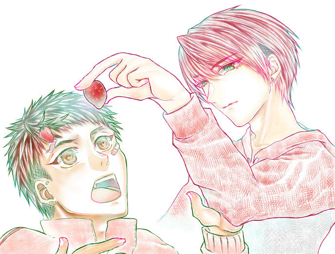 クール美青年→→→ちょいイキり元気系ワンコが好きなんですけれど、このCPは攻(右)がすぐ好きピに染まるのでキャラでもないのに側頭部刈り上げたりピアス空けたりしてます。はたからみるとイキりだしオシャレデビュー()みたいに見えるという。