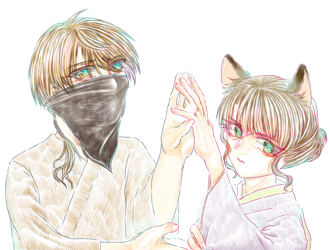 で、片方が存在した場合は妻のほうを概念にしてしまおう、となって完成版。現代風にアレンジすると夫側が黒マスクになるので顔出しできない動画配信者みたいな感じになってしまって、それはそれでいいんですけれどもなんか別のストーリーになってくるわな、と。あと普通に現実の時世(つまり567)か?みたいな。