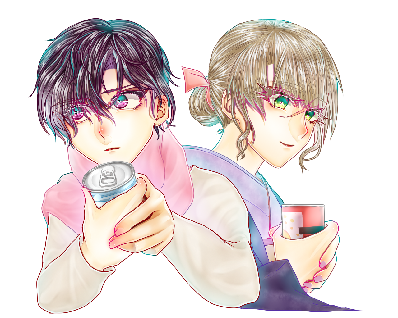 右の人、線画だと割りと気に入ってたんですけど、色塗ったらビミョ~だな。