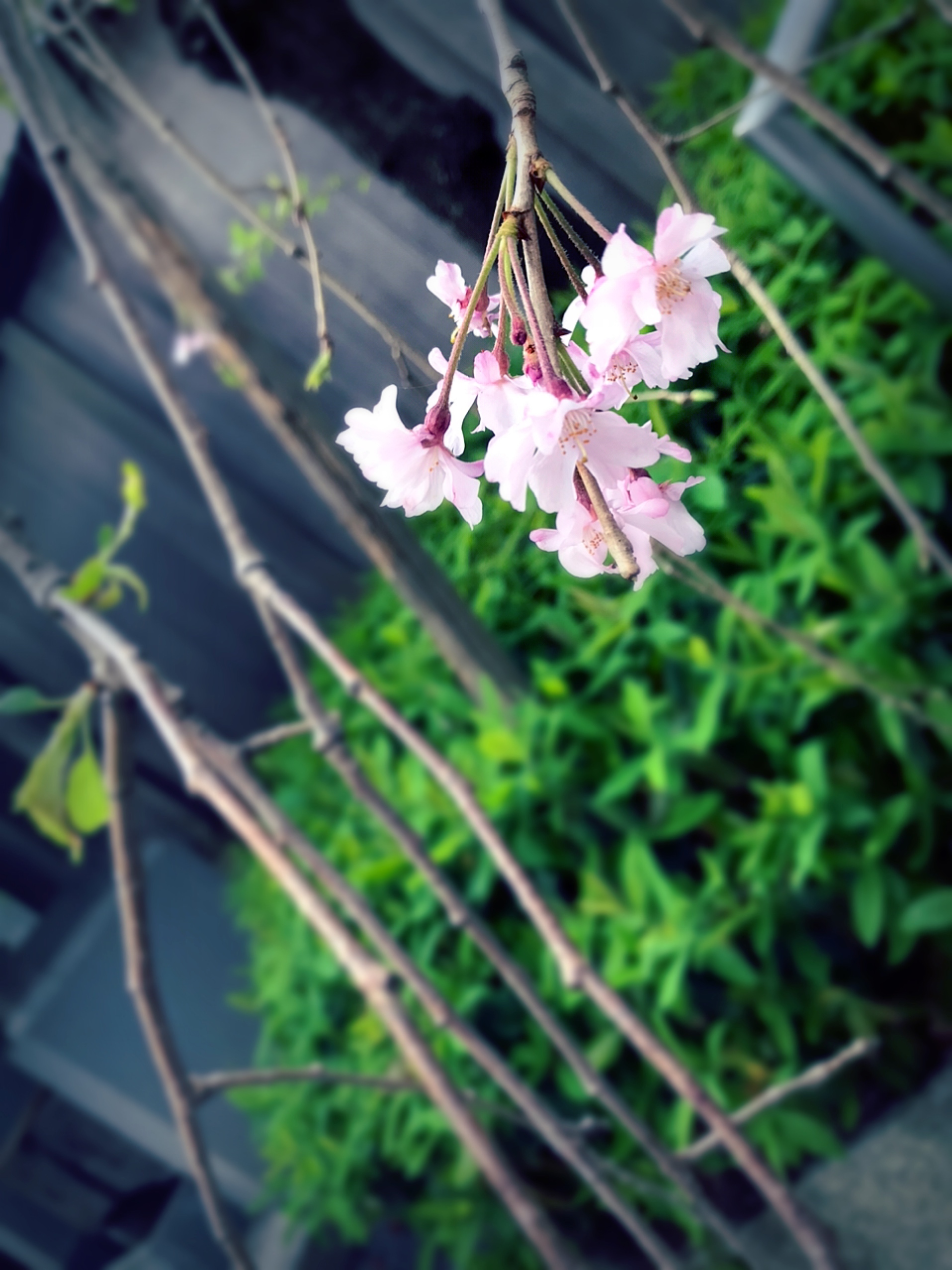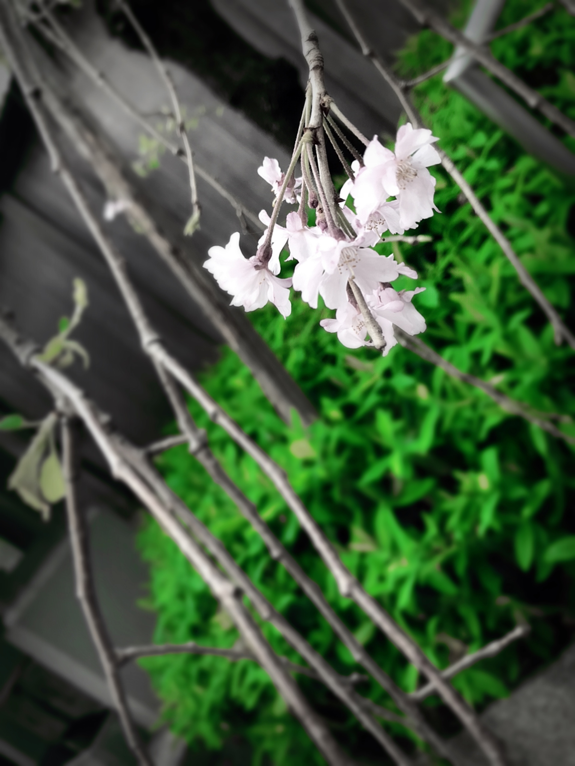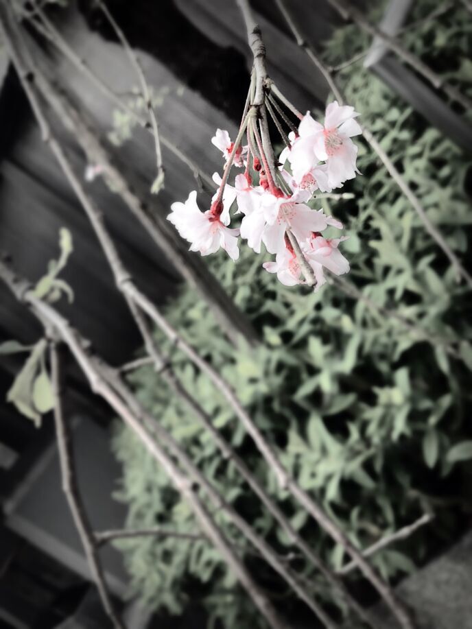これは原画みたときにやっちまった…と思ったけれども加工したら方向性が見えてきました。というのもこれは枝垂れ桜なんですが、この枝と背景に遠近感が生まれたので雑さというかこれが主題やな、みたいなのがパッと見て分かる構図になったので。