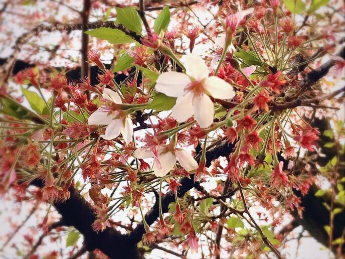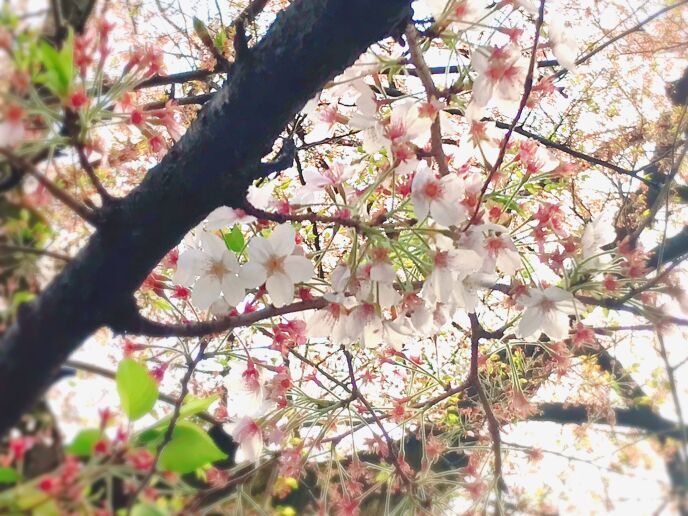 周りが鮮やかに色帯び、桜の花弁が白っぽくなることで逆差し色になる感じ。遠くの色は青みがかり、近くの色は赤みがかると聞いたことがありますわ。空気の色()というやつですね。これの加工のフィルター名も「エアリー」です。