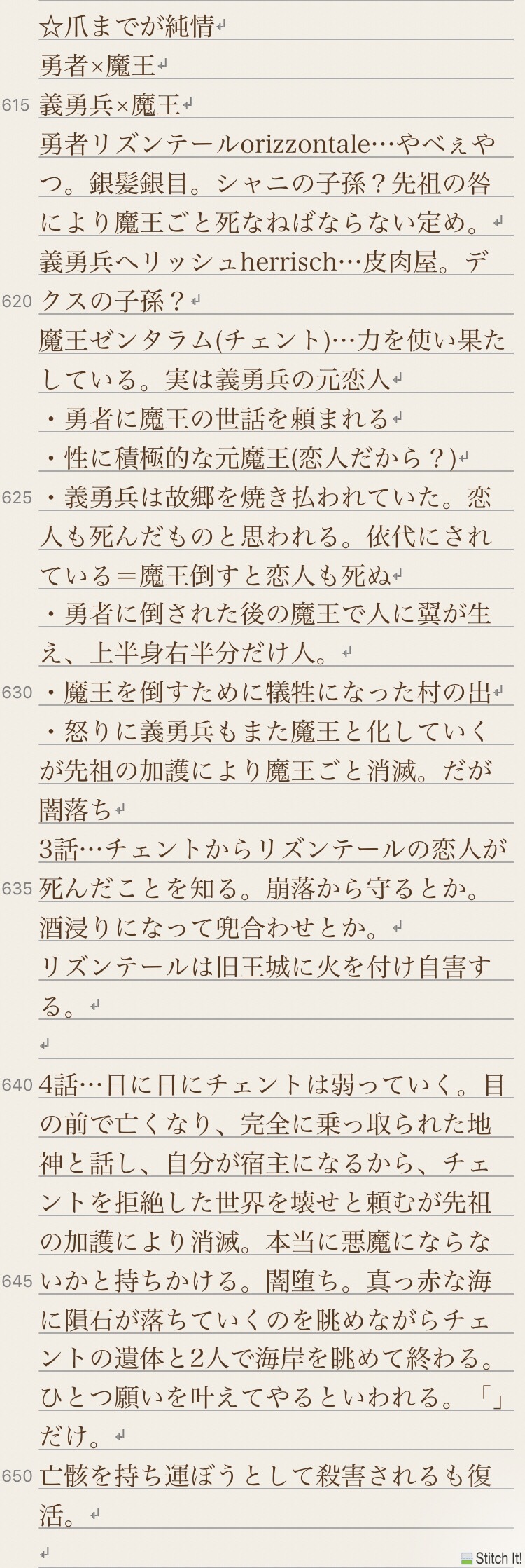 プロットまでちゃんと書いてしまうんですけど、これは自分がいつも「どういうつもりでこんな単語の羅列並べたんだっけ?」となってしまうためです。改めて見ると恥ずかしいな。