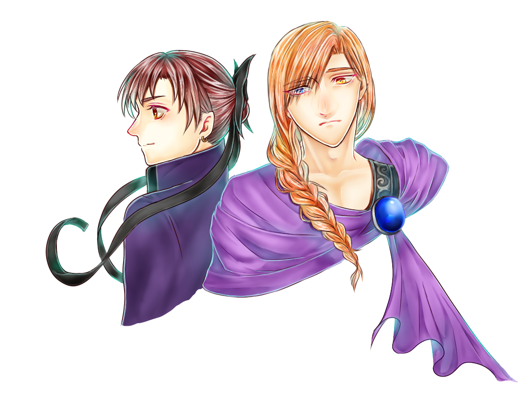 ファンタジー創作のおふたり。この2人は兄妹とか或いは依存の関係かも知れませんね。男女2人だからといって恋仲ってのはどうなんだろうな。左が右へ荷が重い、右が左へ王族として守るっていう矢印が向いてそう。恋仲とかいうよりはもっとカビみたいな関係かも知れませんね。根まで絡み付いて、「別れましたはいさようなら~」じゃ済まないような。好き人や恋人や配偶者よりも優先しちゃうかもしれない厄介な関係というか。お互い疲弊しながらも。想うなんてロマンティックな表現じゃなく考えずにはいられない「業」を背負う関係かも分かりません。知らんけど。いや、言ってみたかっただけでそういう設定は特にないです。