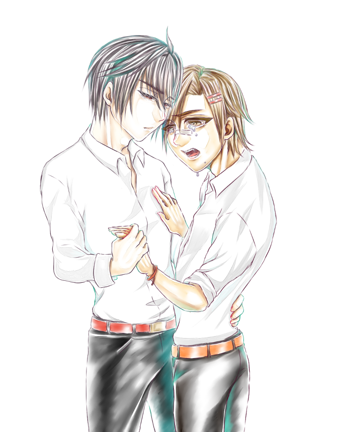 ベルトがお気に入り。今までベルトを適当に描き過ぎていたことに気付き少し意識してみました。わたくしの通っていた高校はベルトだけは自由だったので、この創作に登場する高校のベルトも自由にしたろ!といったところでこのお2人は同種類別色というまさかのお揃いコーデ。偶然にも。ラインナップは赤、橙。紫、白。
