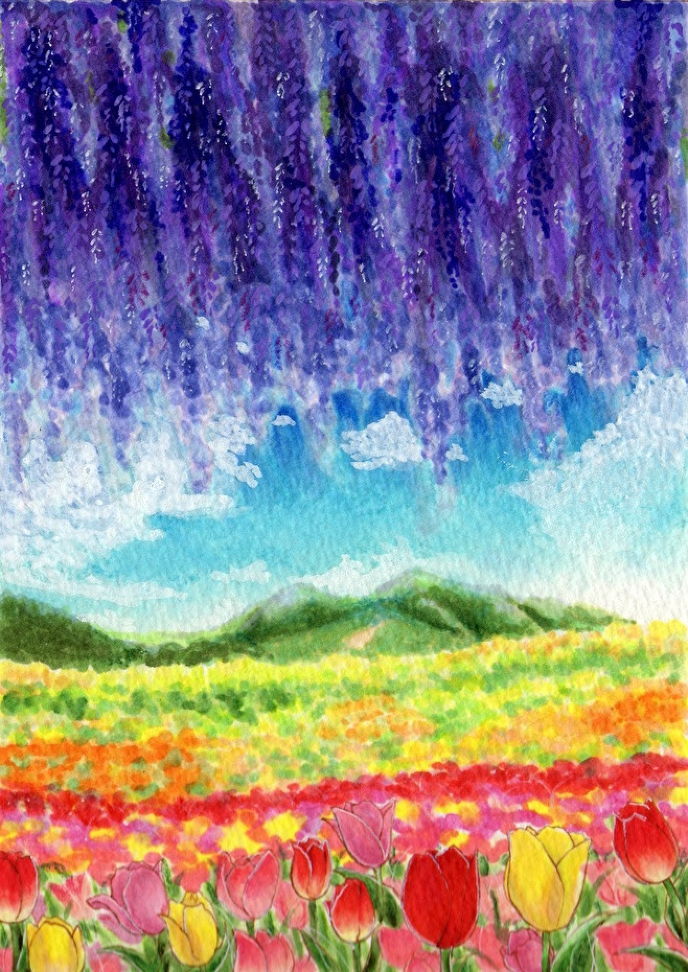 藤棚とチューリップ アナログ