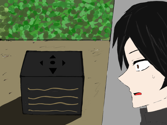 しかし、恐怖とは別に好奇心も存在した。よくよく自分の前方を見てみると何やら祭壇らしき建物があり、その頂上に黒い何かが置いてあるのが見えた。俺はそれが気になり祭壇を登って行った。そして頂上に着くとそこにはとても古びた黒い箱が一つぽつんと置いてあり、箱の表面に何やら見たことのない文字で文章が書かれていた。宗助はその文章をまじまじと見ると、