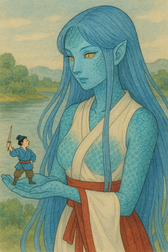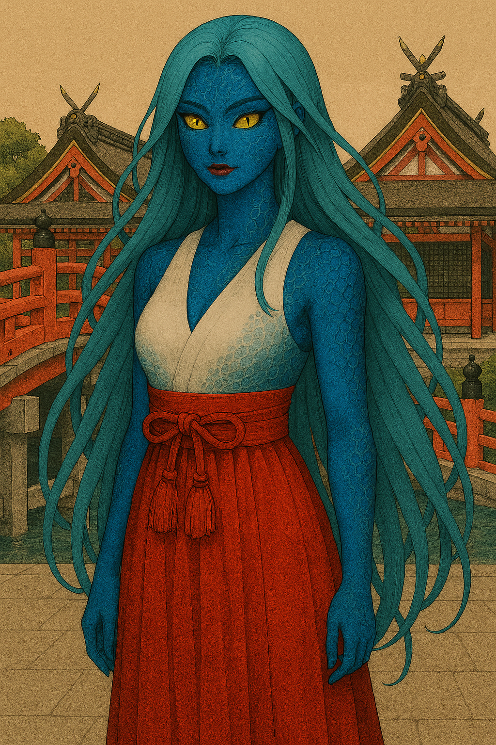 しかしながら、蒼い肌に鱗紋が浮かび、薄い蒼の長い髪、金色の縦に割れた瞳、ボンと大きな胸乳《おっぱい》に薄紫の乳首、キュッと絞り上げた腰、ボンっと蒼い桃尻な妖艶な女性であるために、人としてではなくあやかしとして扱われ、不遇な幼少期を過ごしていました。本性としての姿が、人のように見えるけれど、蒼い肌に鱗紋が浮かび、金色の縦に割れた瞳を持つ妖艶な女性に育ってしまった綾姫様は、法的に人という形でしたが、なかなかに難しい立場でありました。