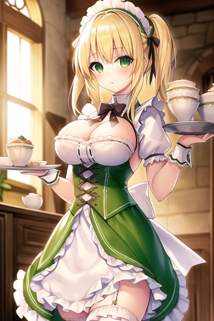 その時、俺に声をかける女性の姿があった。フリルの付いたメイド服、酒場の店主の気まぐれで決まったという制服を纏っていた。