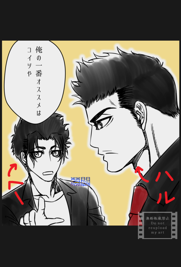 ガッ、と渋撥が美作の胸座を掴んだ。美作は顔面の筋肉を引き攣らせて「例え話です!」と訴えた。
