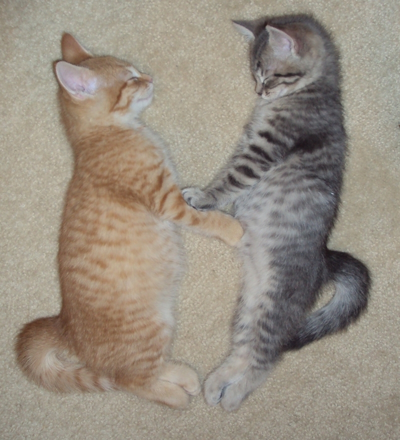 どれどれと子猫のケージを覗き込むと、コタローと抱き合ってチャトラの子猫も一緒に寝ていた。