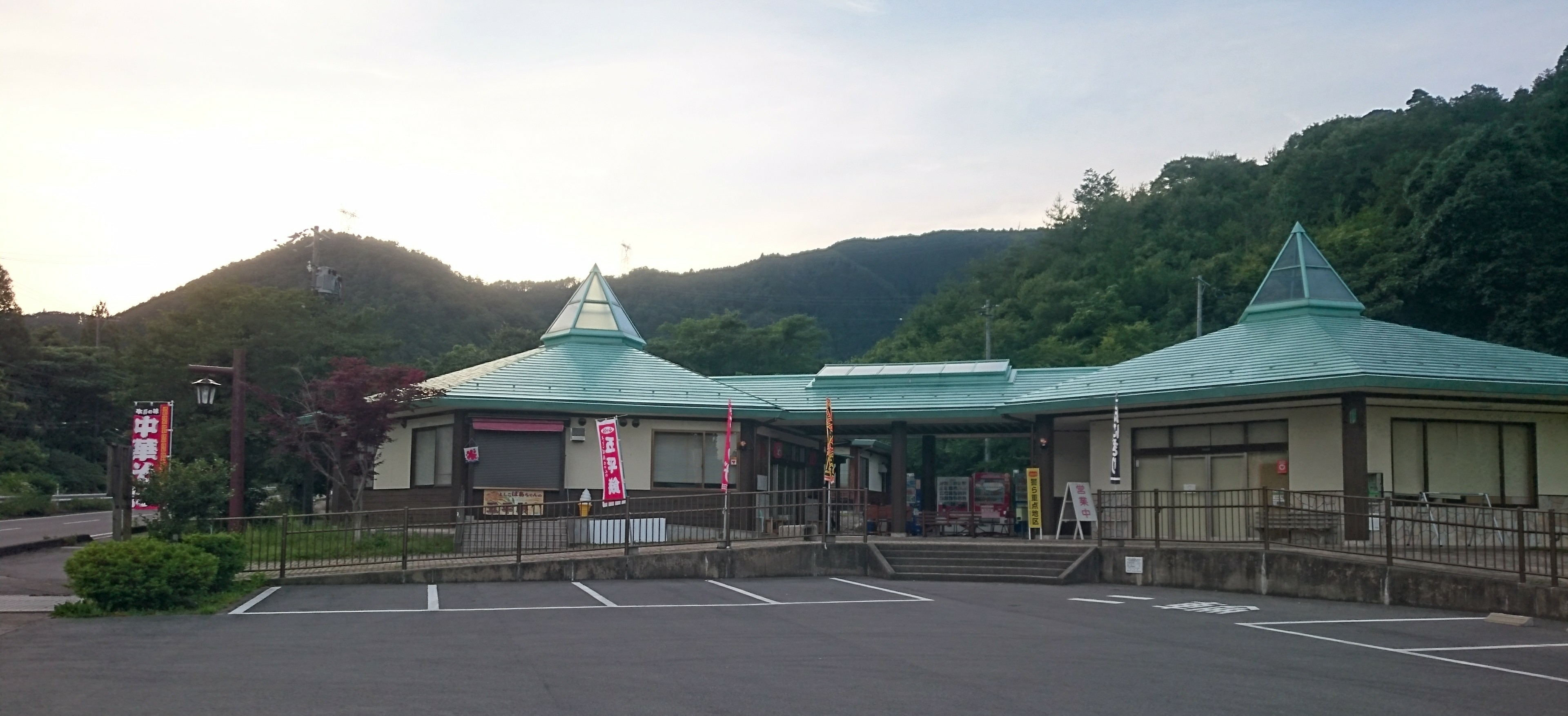 この道の駅、正面から見ると小さな販売店とラーメン屋と、あとはトイレと休憩室しか無いんだけど...