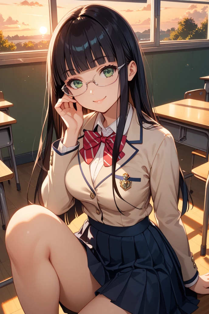 髪型:濡羽色の黒髪ロング(姫カット)。銀縁眼鏡を愛用。