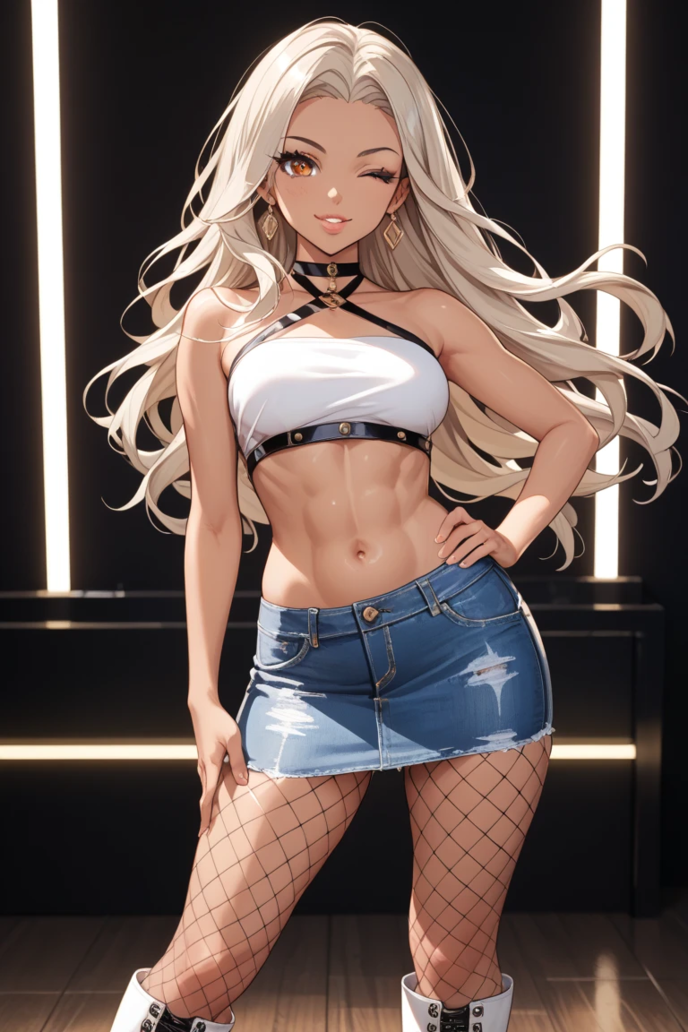 ・プロポーション: モデルらしく手足が長く、スラリとした細身の体型。 無駄な肉がない「見せるための体」だが、過酷なサバイバルで少し痩せすぎている(肋骨が浮きかけている)。