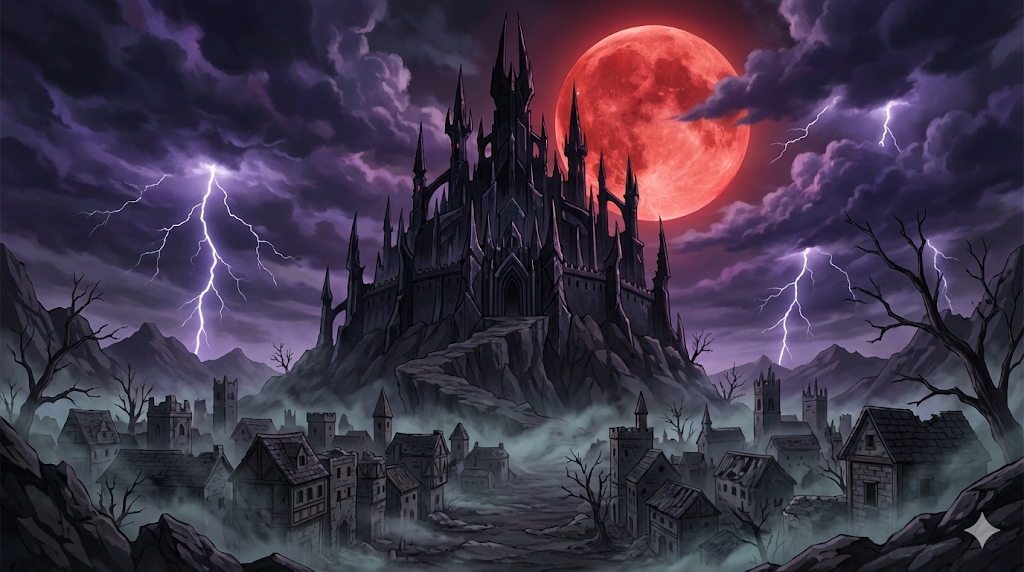 鋭利な棘のような塔が無数に天を突き刺し、城壁には無数の魔物のレリーフが刻まれている。