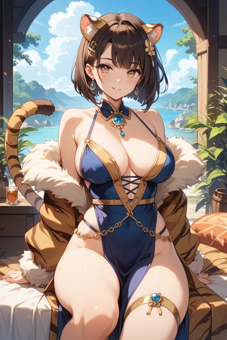 容姿: 焦げ茶色の髪と、鋭い黄金の瞳を持つ。獣人としての本能が強く出た、ワイルドで奔放な魅力がある。普段は耳と尻尾を隠しているが、興奮すると飛び出す。