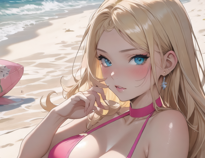 瞑想中のオレにタックルかましてきた女性は、あのスーパー銭湯のマッサージ店にいるお姉さんスタッフさんだった。勿論今日はマッサージ店のスタッフの服装ではなく、海辺らしく鮮やかなピンクの水着をつけている。