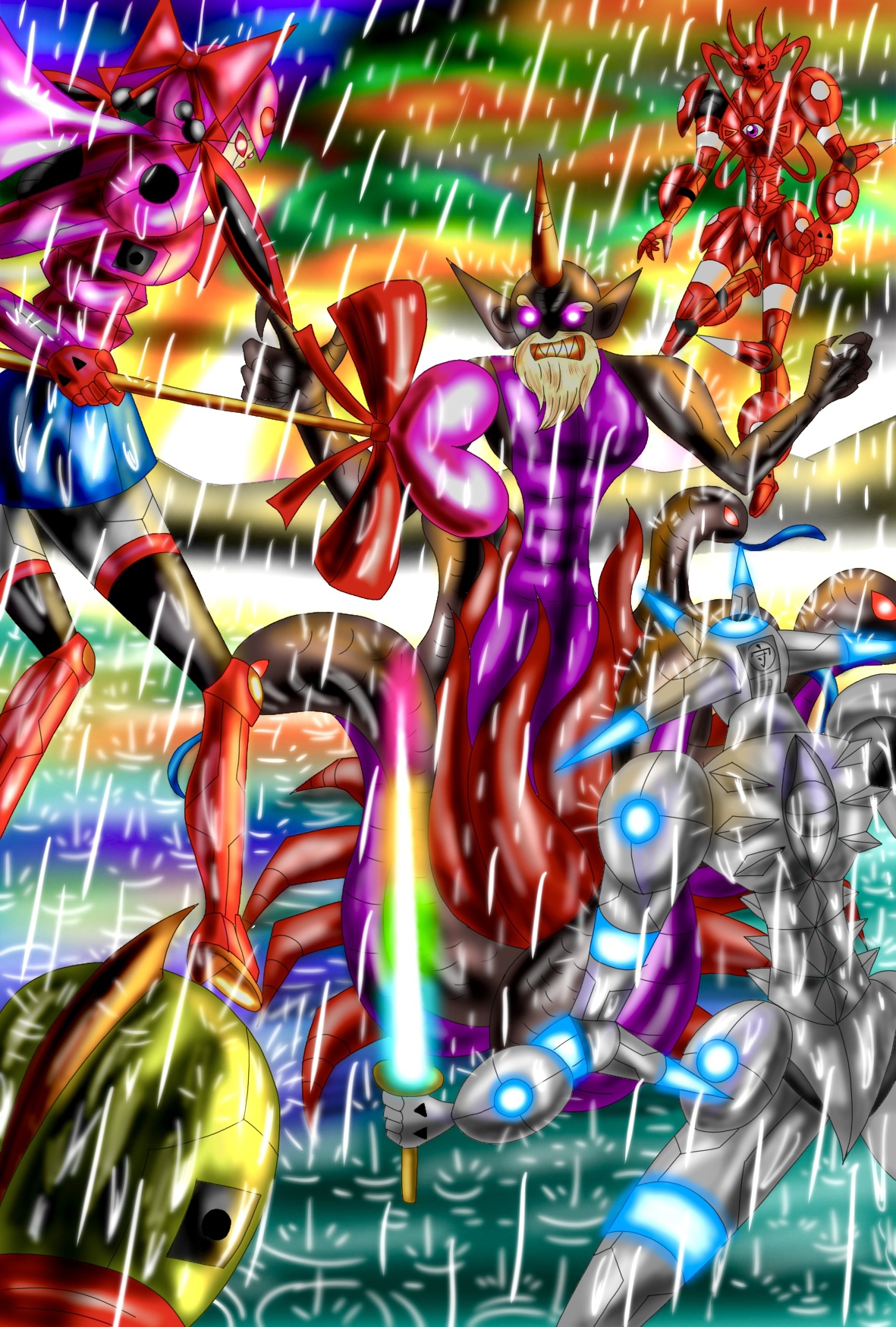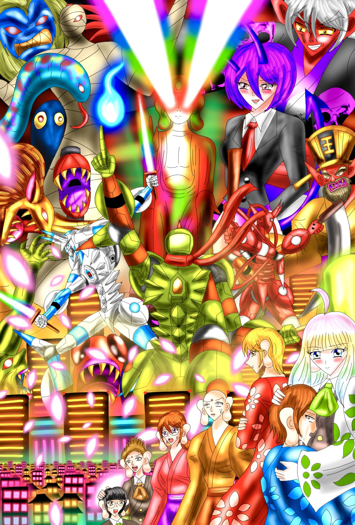 ナオト達の敗北に息を飲むゴウ。しかし、一同は諦めなかった。ナオト達を救出すべく、司隊職員、及び魂隊職員と協力し、使い古しであった旧型飛行戦艦・イザナギを使い、ナオト達の救出を急ぐのであった。ゴウとスバルを首席に、イザナギが発射する。厭魔の足止めをしたと同時に、特殊武装を使い、アミーダ九機の封印を解く事に成功する。そして、アミーダ九機とゴウやスバルをはじめとした司隊職員・魂隊職員の乗るイザナギは、一心同体となり、厭魔に懸命に攻め込むのであった。厭魔の攻撃を掻い潜る一同。厭魔は、先の攻撃で体力を大幅に消耗していた。今が攻撃のチャンスだ。そして、アミーダ九機とイザナギは合体技を放った。放たれた技は「超超超超超超超阿弥陀光超超超超超超合体無限光」と呼ばれる、強力な十二色の光を放つ必殺技だ。その技を直に浴びた厭魔は、勢いよく貫かれ、絶叫を上げながら、全ての妖怪とともに散るのであった。そして、神仏郷を覆っていた空は晴れ、神仏郷に光が戻った。