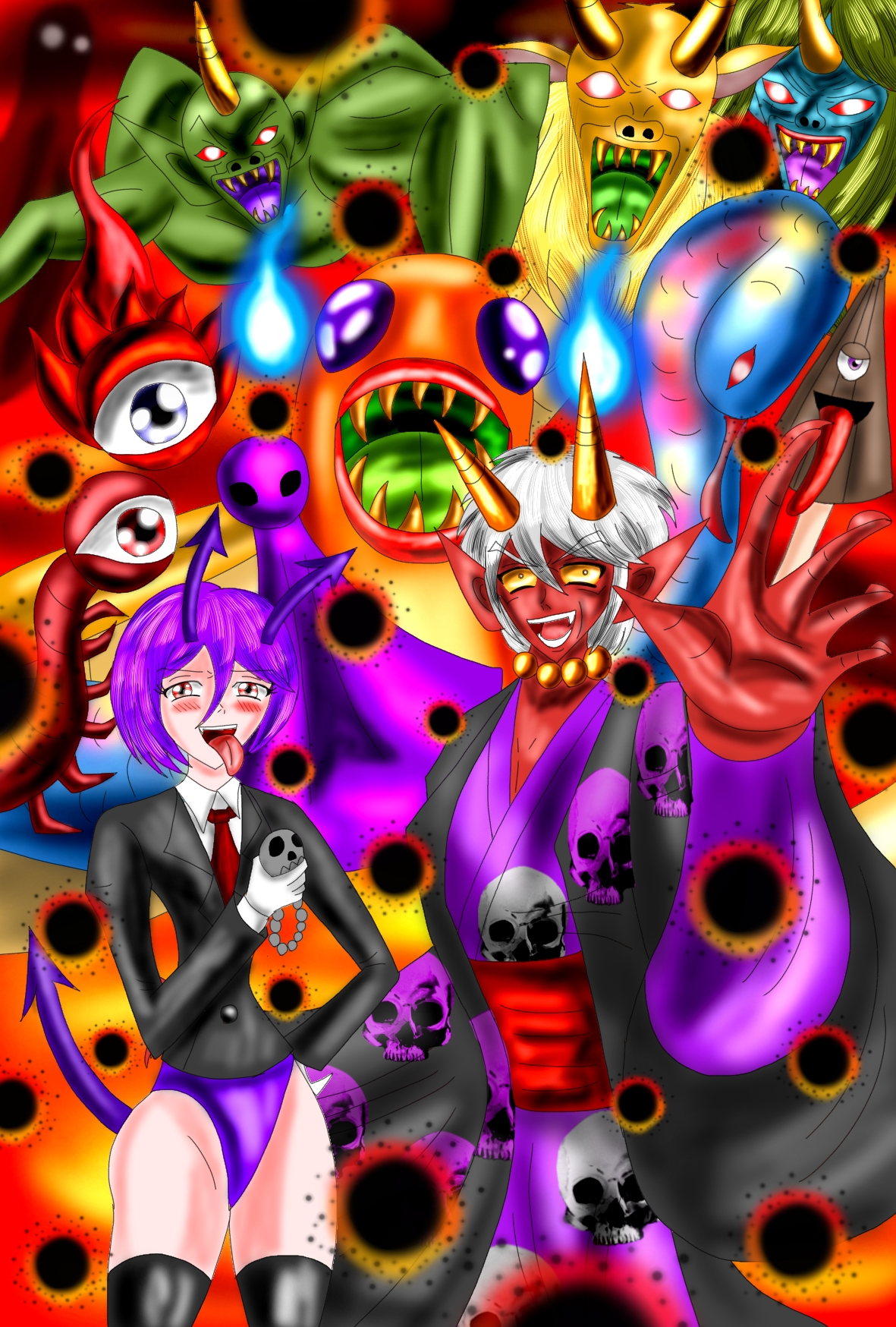 とある城の中に。何やら妖怪達がひしめき合っている模様であった。そう。彼らは「羅刹団」。仏教世界を乗っ取り、妖怪のものにしようと企んでいるのだ。そんな羅刹団の指揮をとるのは、白い髪に、頭に二本の角を生やし、黒と紫の髑髏のあしらわれた和服を纏った赤鬼のような大男・獄堂厭魔(ごくどうえんま)と、紫のショートカットに、頭には尖った角、上半身はスーツだが、下半身は紫のパンツに、サイハイブーツといった際どい格好をした女・魔子(まこ)であった。その二人は、配下の妖怪に命令し、仏界の支配に野心を燃やしていたのだ。