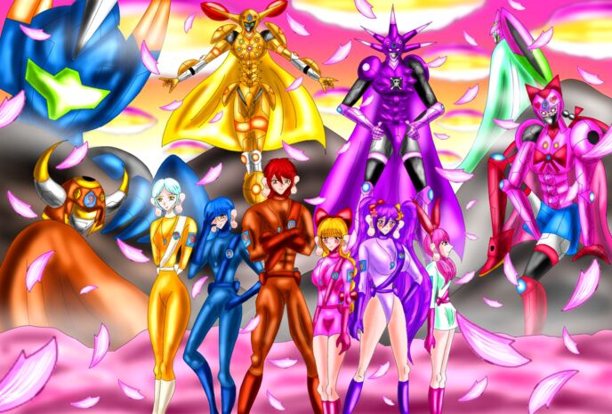 神仏郷上空。ブッダリア、カンゼノン、ダーキニー、アミターバ、ジャンペル、サマンタ、マイトレーヤ、マハスター、ヴァーユのアミーダ計九機と、ダークアミーダが対峙する。そして、ノエとトキオの指示を仰ぎ、ナオト達はダークアミーダに攻め込んでいく。ダークアミーダは、闇の力以外でも、氷や炎、プラズマなどといった様々な技を使い、ナオト達のアミーダを苦しめる。アミーダ九機は、懸命にダークアミーダに攻め込むが、ダークアミーダの俊敏な動きや、強烈な攻撃法で、なかなかダメージを与えることができない。ひたすら、ダークアミーダは、様々な攻撃法を繰り出し続ける。ダークアミーダの攻撃により耐えられる事なく、ナオト達のアミーダ九機は、エネルギー切れへと追い込まれてしまう。窮地に陥る中、ダークアミーダは九機を相手に、黒と紫の稲妻を放った。よって、アミーダ九機は、単機のダークアミーダに屈してしまう。しかし、ノエとトキオは、決して諦めてはいけないと呼びかける。阿弥陀仏像からエネルギーをチャージした。よって、アミーダ全機は回復。トキオは、ダークアミーダが先の攻撃により、エネルギーが大幅に減っている事に気づく。ダークアミーダの弱点を突き、ひたすら攻め込み、ダークアミーダにダメージを与えていくアミーダ九機。そして、敵をエネルギーダウンへ追い込んだ!アミーダ九機は、手を繋ぎ、全身を光らせ、九色の光をダークアミーダに浴びせた。光が弱点のダークアミーダは、力を維持できずに、そのまま爆散、消失するのであった。