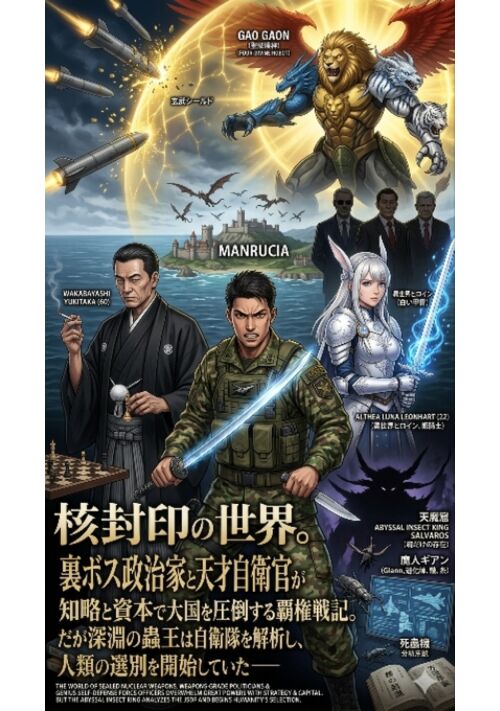 核封印の世界。裏ボス政治家と天才自衛官が知略と資本で大国を圧倒する覇権戦記。だが深淵の蟲王は自衛隊を解析し、人類の選別を開始していた