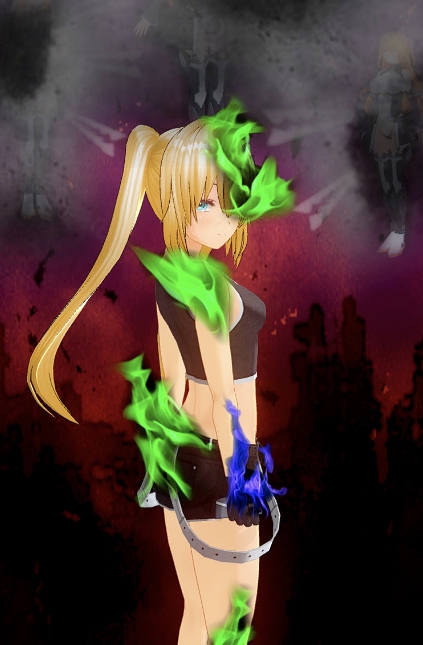 消えゆく光線の中で、緑の炎に包まれたファイスはアンリエッタに視線を向けたまま、その場に立ち尽くしていた。