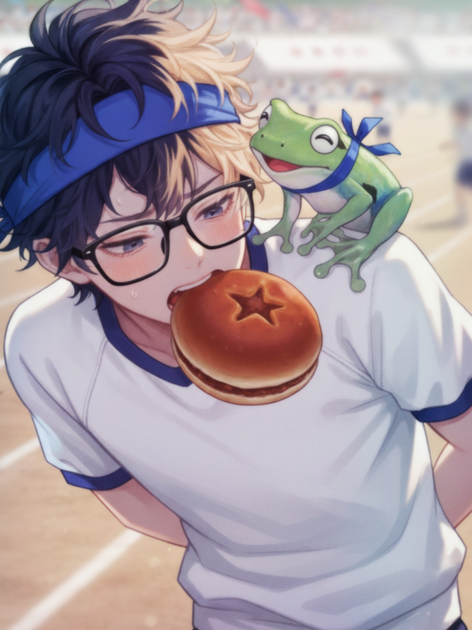 競技と競技の合間、青テント前で水を飲んでいると、放送席の朱里が、水のボトルを口にあてて笑っているのが目についた。アカツキに何か囁かれて、目尻が柔らかく光る。遠目でも分かる。声が空気を撫でて、曇りを一枚剥がすみたいだ。