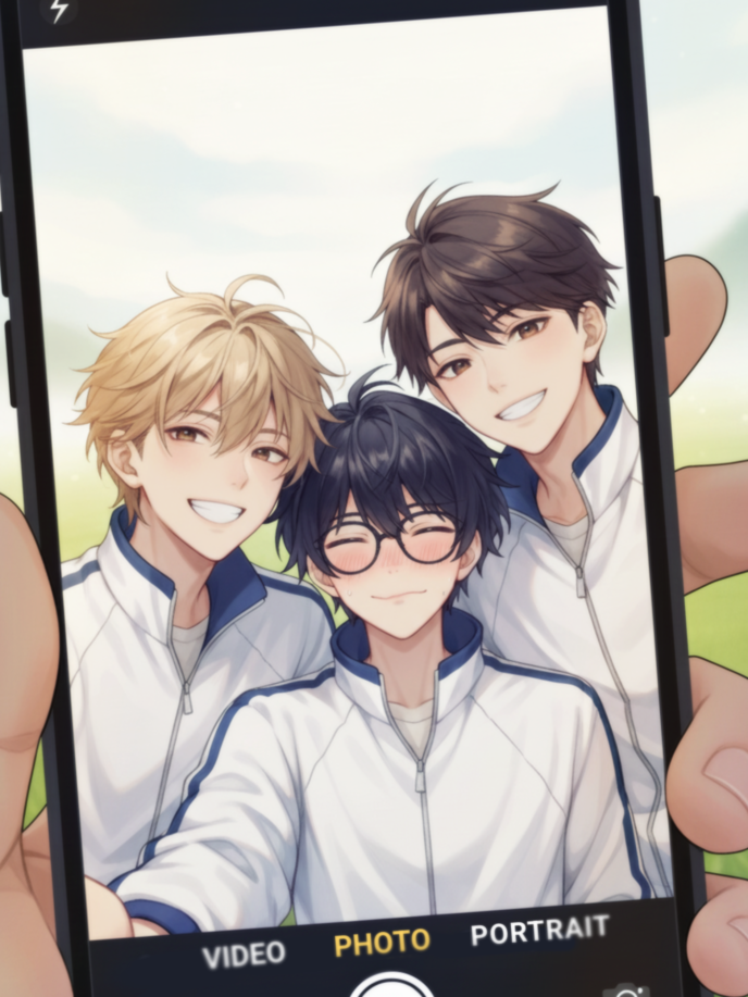 朱里が右、白河が左。二人がぐっと前に寄ってきて、肩が触れた。近い。思ってたより、ずっと近い。