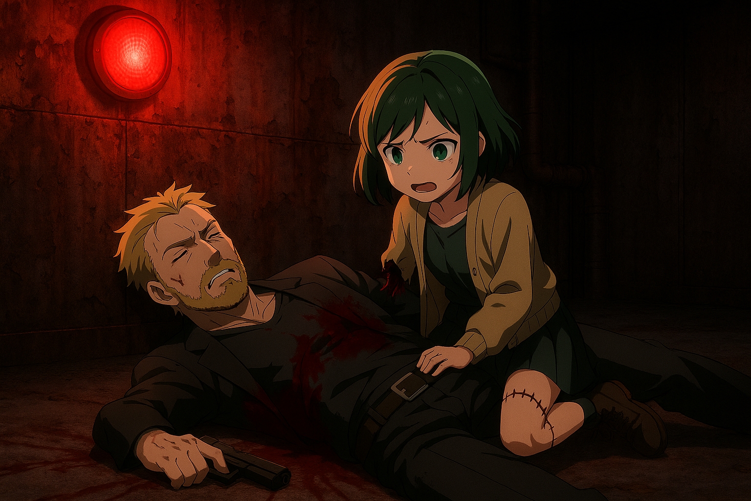 視界は涙で滲み、血の色と赤色灯の残光が混ざり合って世界が歪んで見えた。