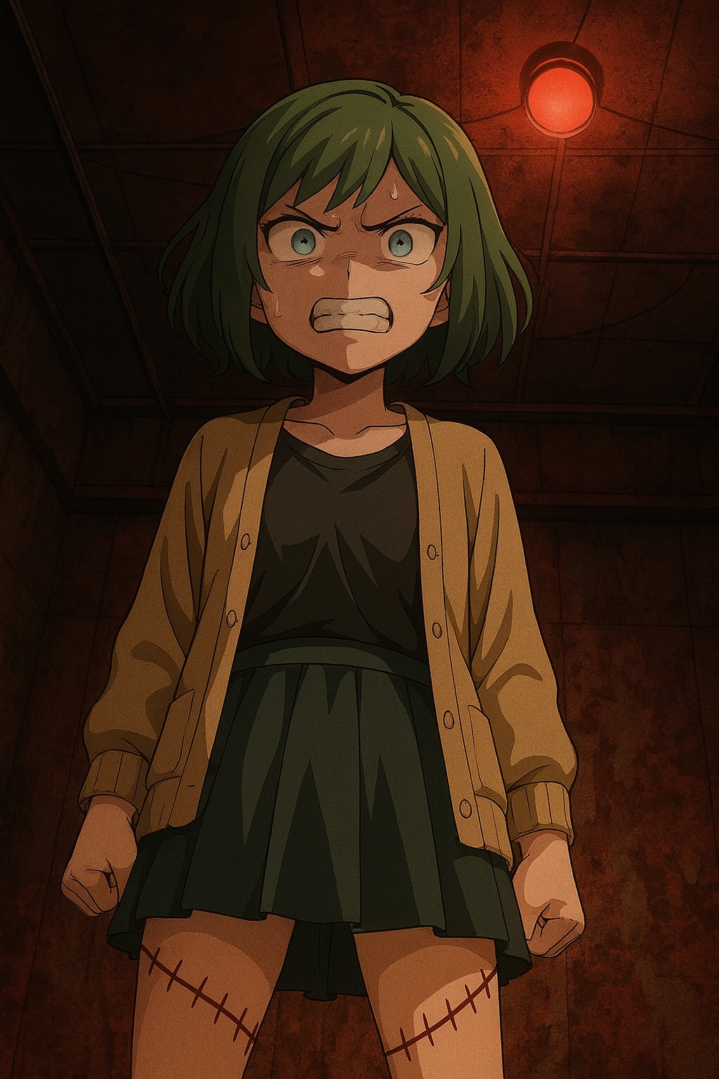 赤色灯が壁を血のように染め、ジェイソンの笑みを浮かび上がらせた。