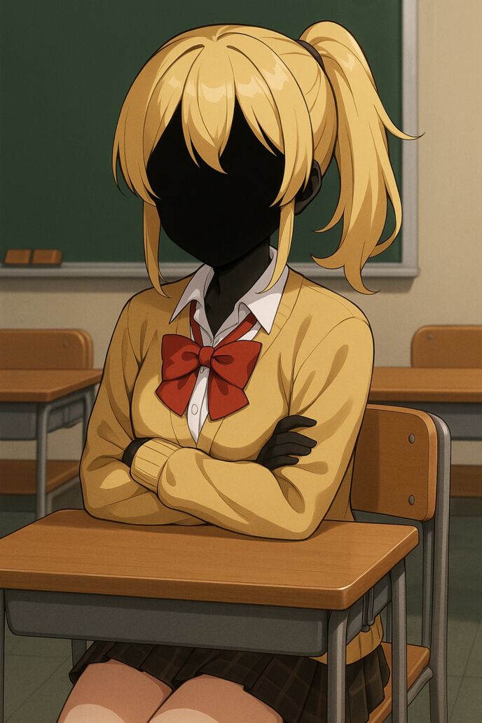 ただし、その顔は——黒に染まっていた。