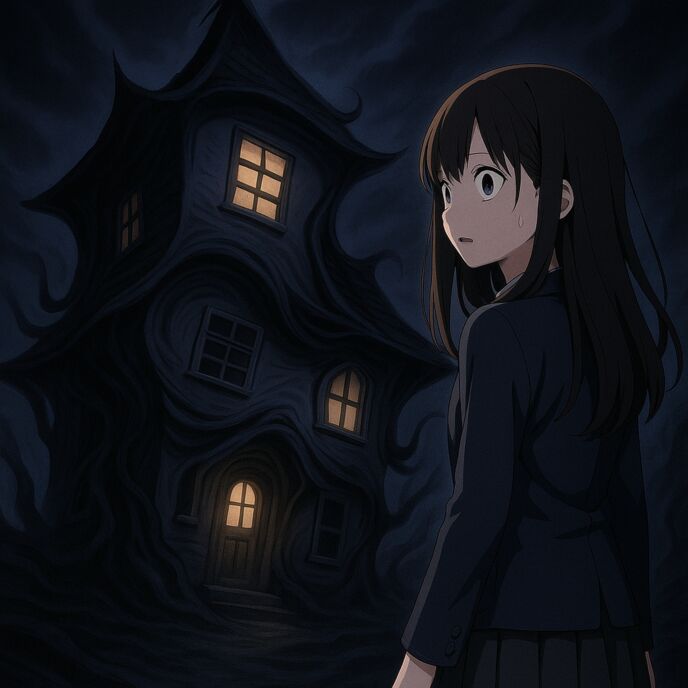 一歩ずつ、濡れた音を立てて進む。何もないはずの前方に、突如として「建物」が現れた。