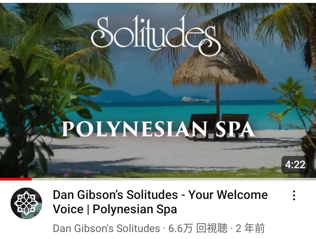 ★YouTube開いて「ポリネシアンスパ ウェルカムボイス」と検索してみてください。上から1,2番目あたりに、4分22秒の「Dan Gibson's Solitudes - Your Welcome Voice / Polynesian Spa」という動画が出てくると思います。下記YouTube画像を切り抜きしました。ご参照ください。