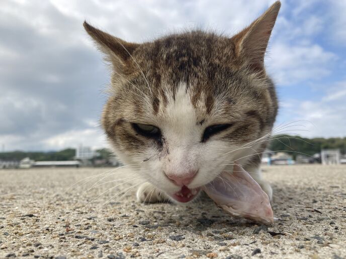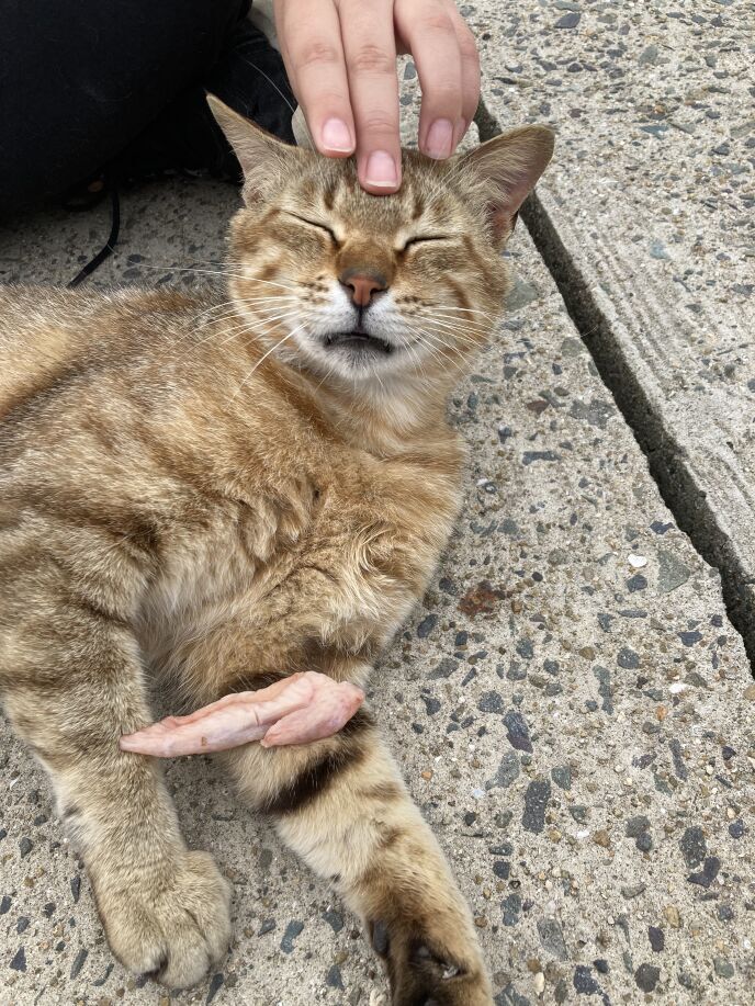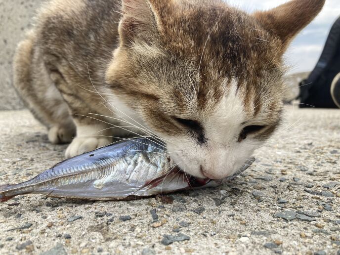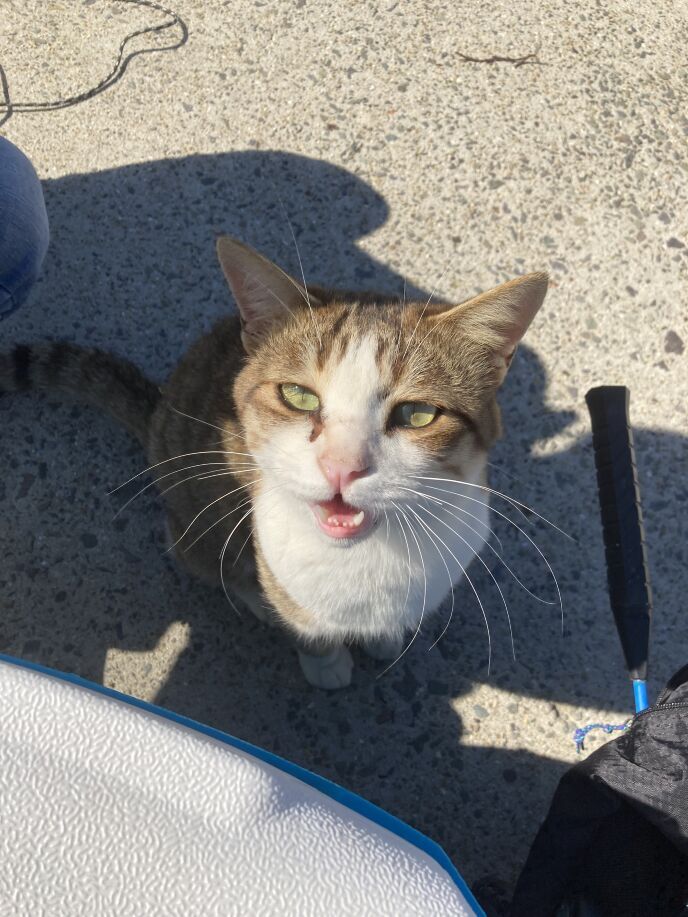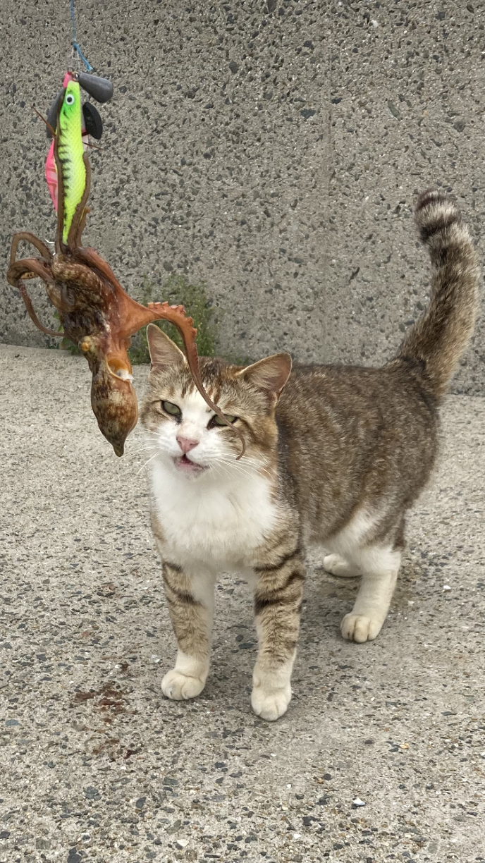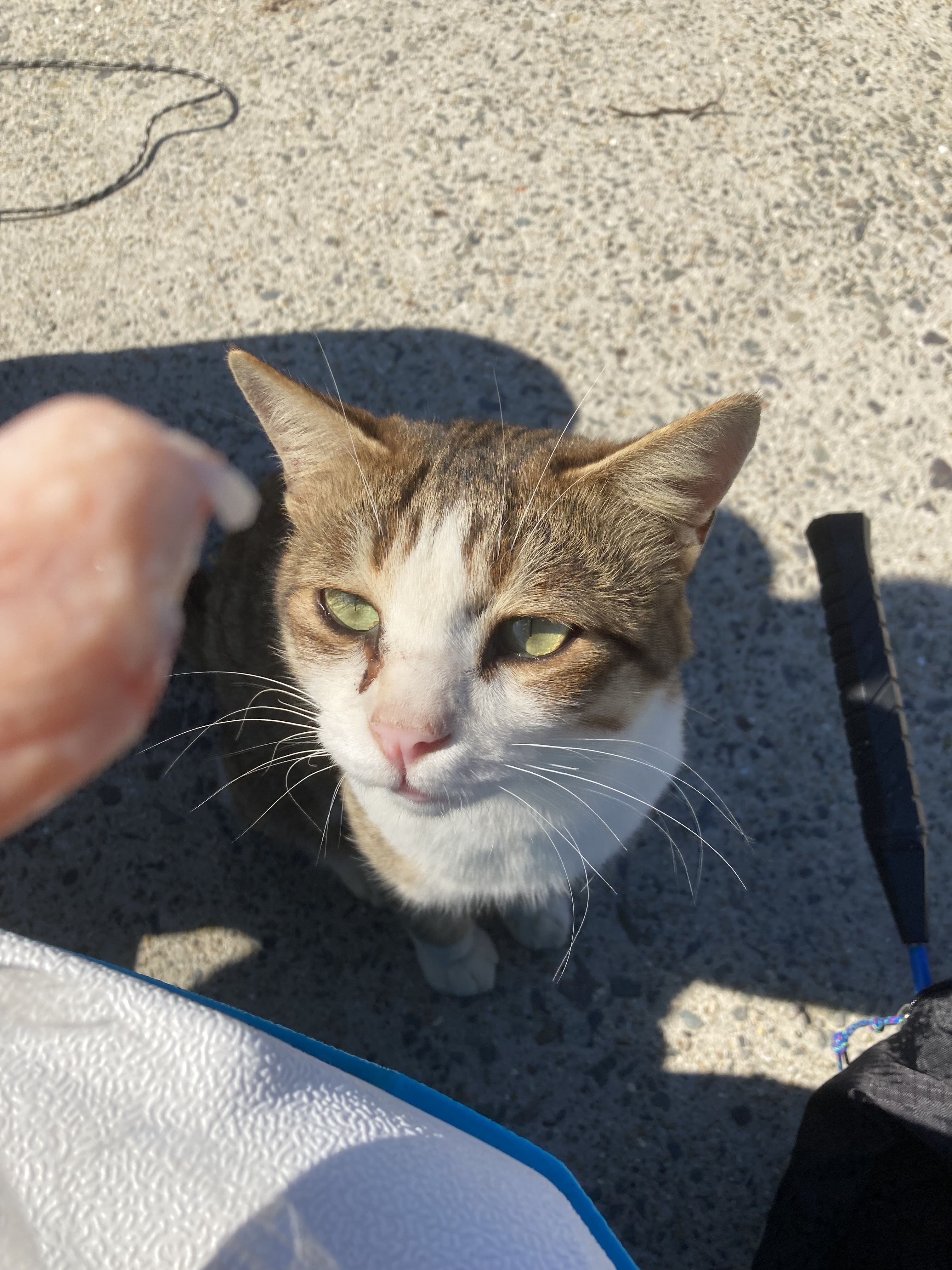 ものすごく人懐こくて初対面でも擦り寄ってきます。(釣れた魚を貰うためにやっている知能犯かもしれませんが……笑)