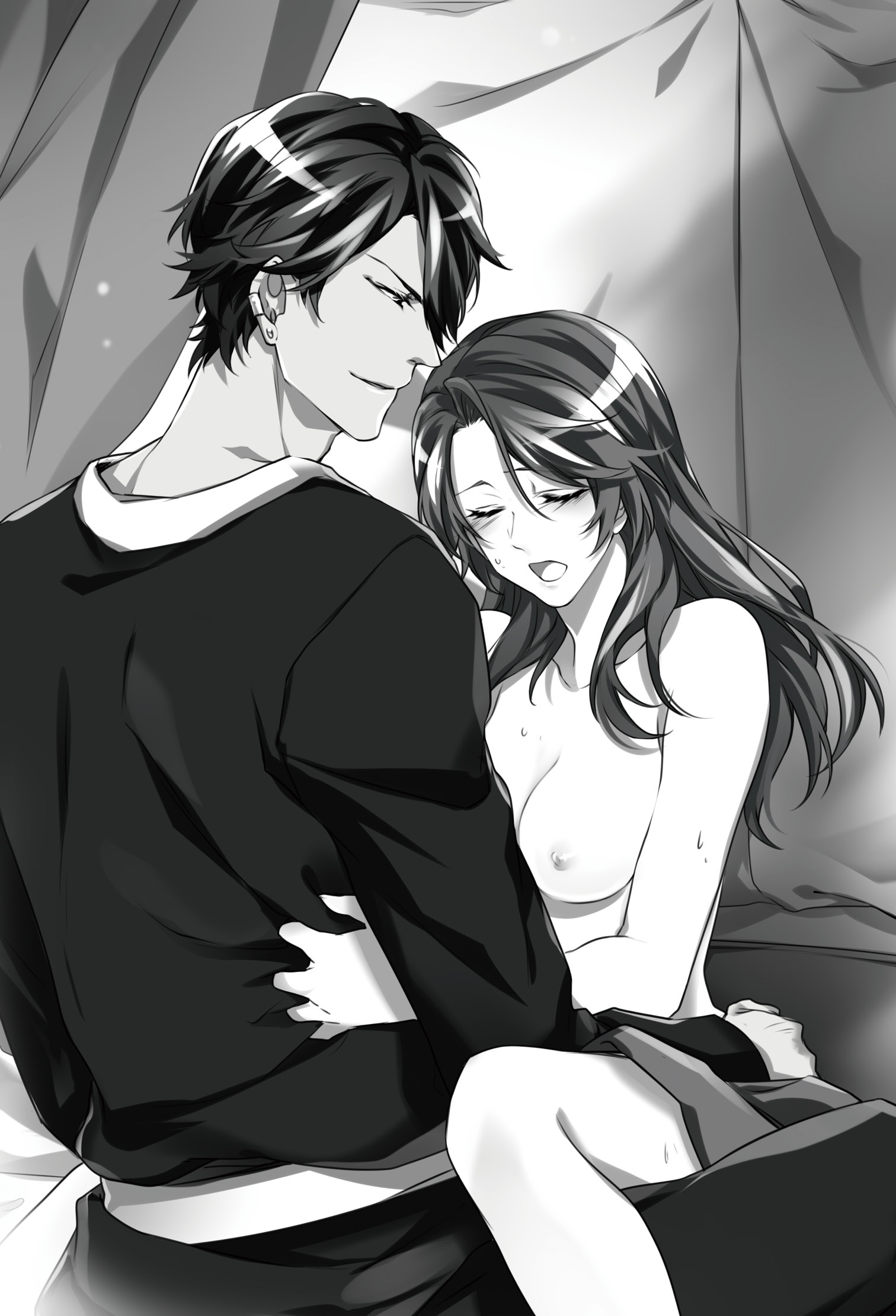 硬くなった胸の先端を口に含まれ、時折、気ままに花芯を強く弾かれれば、理性も思考も最早欠片も残らない。甘い痙攣を抑え切れなくなり、無意識にアーディルの背に回した腕が、服越しに薄らと彼の汗を感じ取って……それが何故だか嬉しくて。