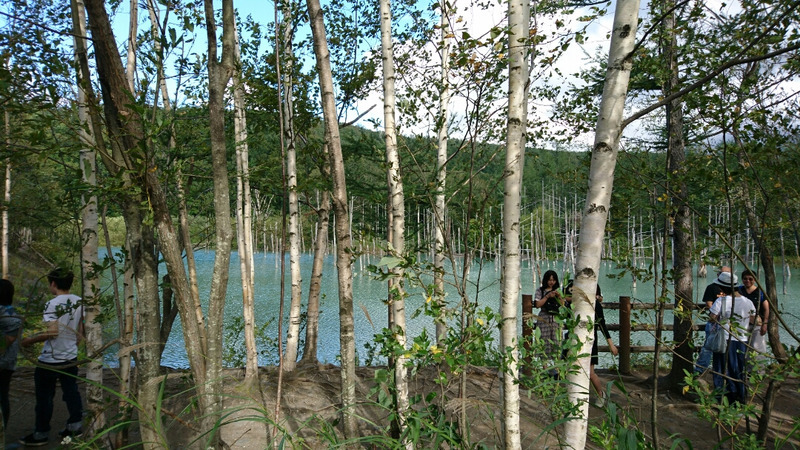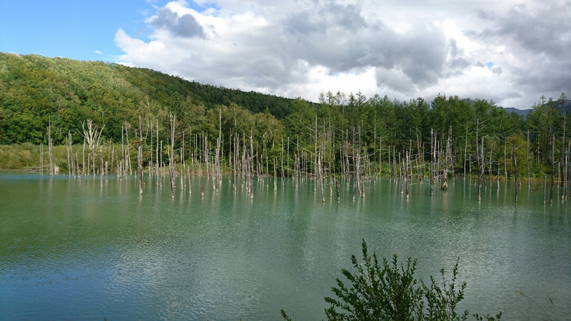 ポスターで見た青い池の青さではないけれど、水面に空の青さが映りこみ、私には十分な青い池の景色です。