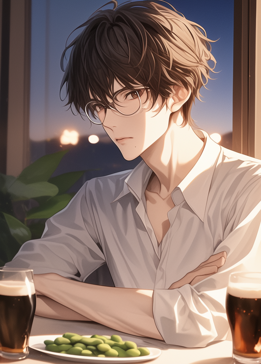 サトシは、枝豆とビールの前で腕組みして考え込んだ。