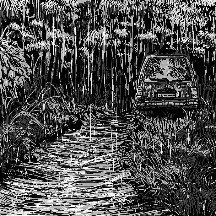その隙間をカーテンのように薄く揺らめきながら、ざあざあと雨が降り注いでいる。