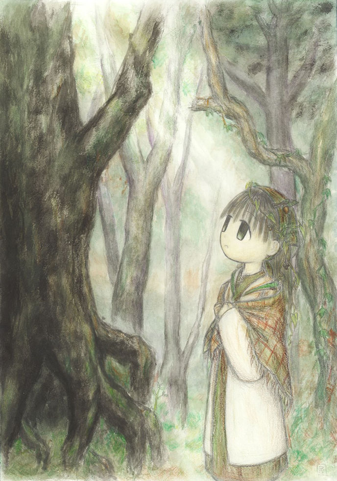 微風になびく焦茶の髪は森の古木に融け、