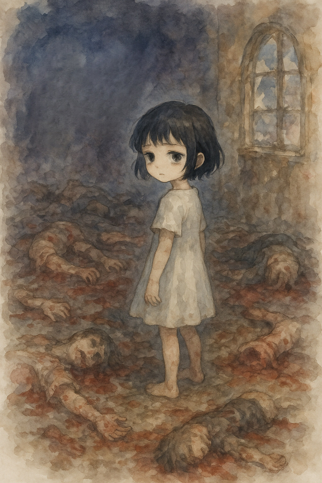 次の日、新しい子がこの教会に来た。年は私と同じぐらいの女の子。手足が骨折しており、杖をついていた。食事の席は私の隣で、とても哀しい顔をしていた。話しを聞くと昨日、一緒に車に乗っていた両親が死んでしまったと話してくれた。自分も一緒に死にたかったと言って涙を流しながら。