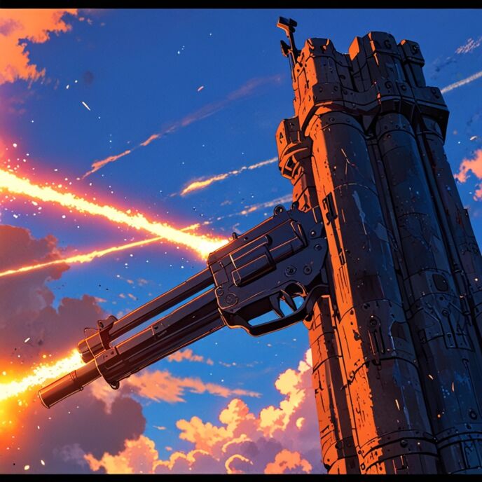 砲門部分にベリアルが突っ込むと、大きな爆発が起こり爆音が響きわたる。そして煙と炎に包まれたベリアルが、グングニルに突き刺さった様な形になると