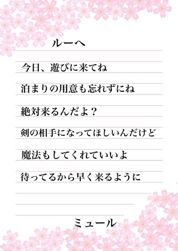 「ルー!ミュール王子からルー宛に手紙が来てるぞ」